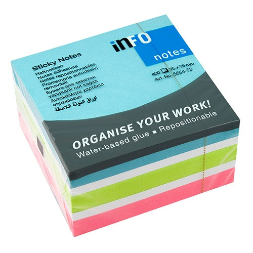 Öntapadós jegyzettömb Info Notes Mix 75x75 mm 400 lapos színes-fehér